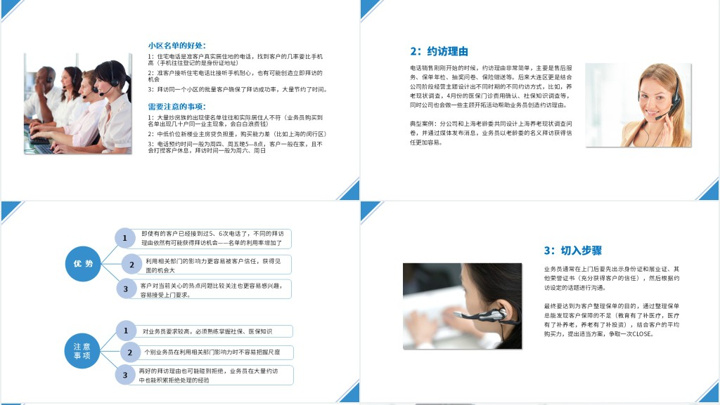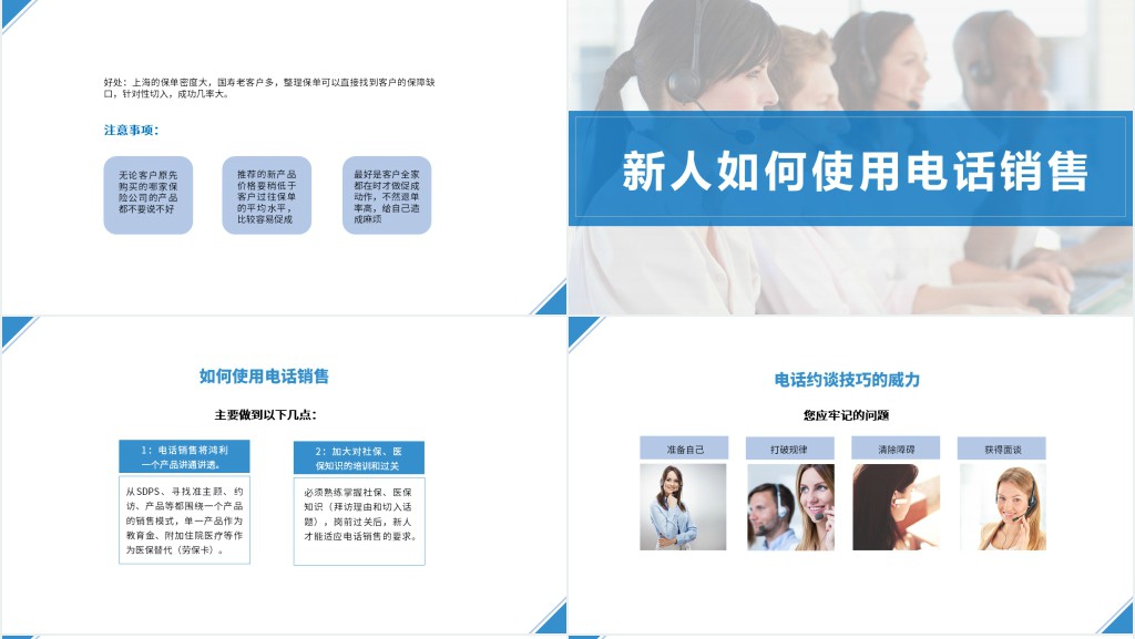 这套保险销售业务员打电话技巧PPT模板属于内容型,已包含实质内容,可直接使用!