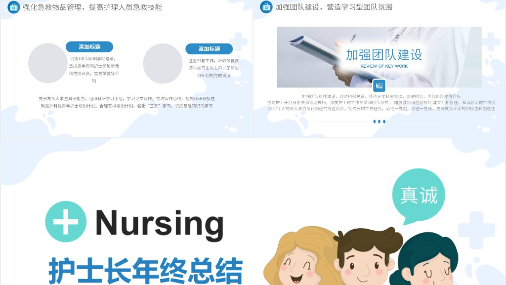 这套卡通风年终护士长岗位总结PPT模板属于内容型,已包含实质内容,可直接使用!