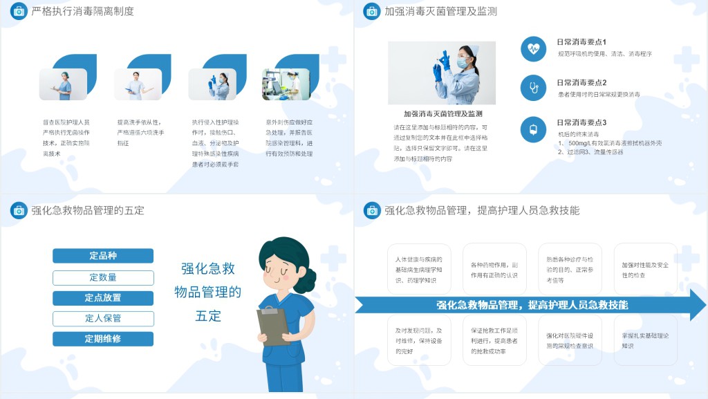 卡通风年终护士长岗位总结展示内容,以生动活泼的卡通形式呈现,通过色彩鲜明的插画和有趣的图表展示,突出护士长在全年工作中的亮点与成绩,包括团队管理、病房卫生管理、医患沟通等方面的重要内容。通过可爱的卡通形象和生动的场景描绘,激励全体护士积极向上,共同努力提升医疗服务质量,为患者提供更加优质的护理服务。