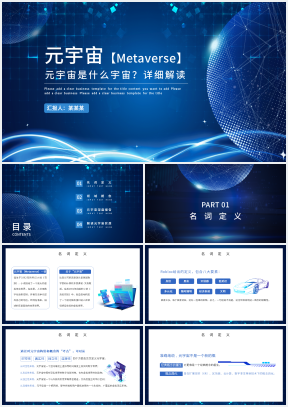 这套元宇宙知识科普PPT模板属于内容型,已包含实质内容,可直接使用!