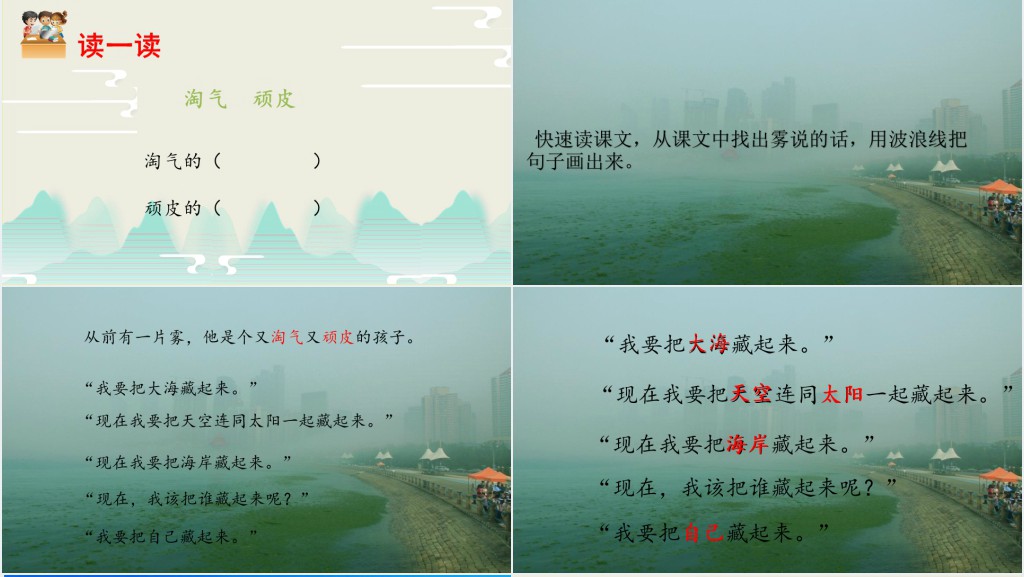 这套部编人教版小学二年级语文上册雾在哪里课文PPT课件属于内容型,已包含实质内容,可直接使用!