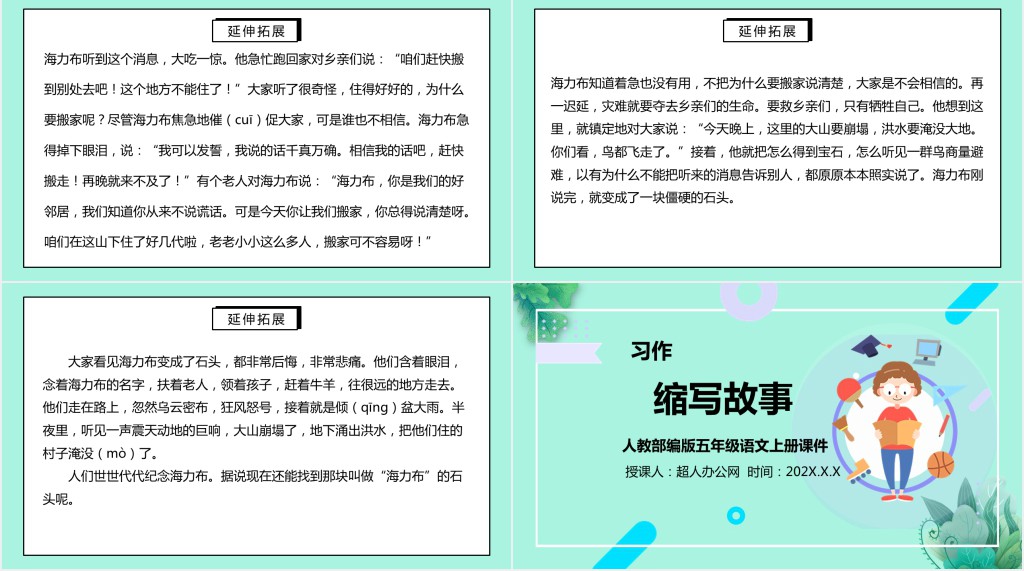这套部编人教版小学五年级语文上册缩写故事PPT课件属于内容型,已包含实质内容,可直接使用!