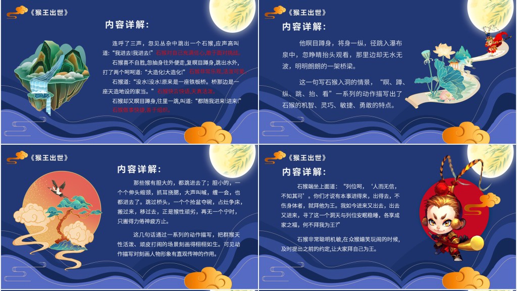 这套部编人教版小学五年级语文下册猴王出世PPT课件属于内容型,已包含实质内容,可直接使用!