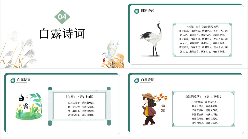 这套白露节气知识宣讲介绍PPT模板属于内容型,已包含实质内容,可直接使用!
