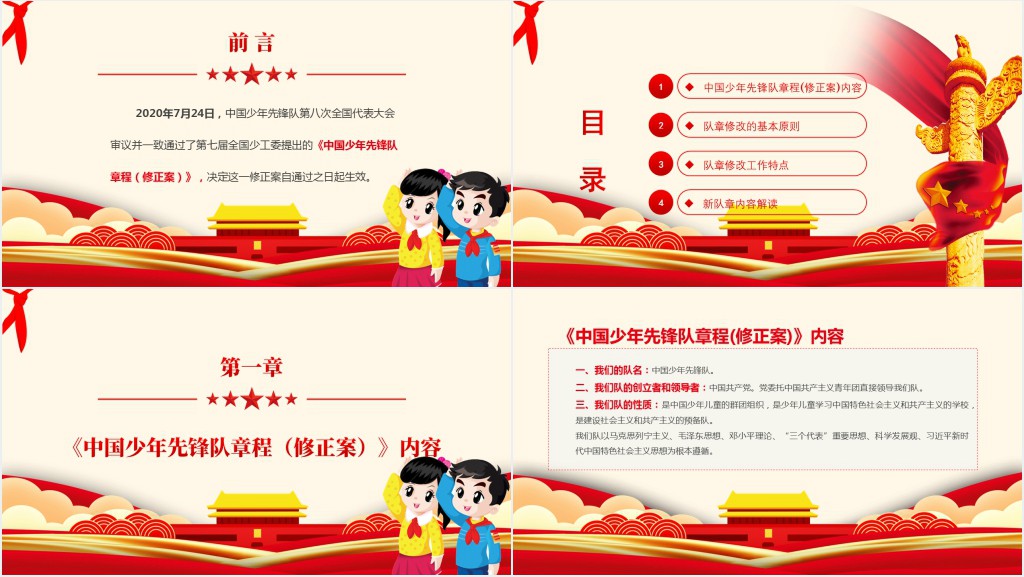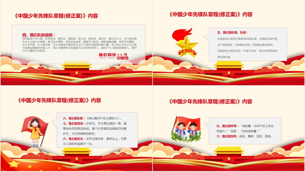 这套中国少年先锋队少先队章程PPT模板属于内容型,已包含实质内容,可直接使用!