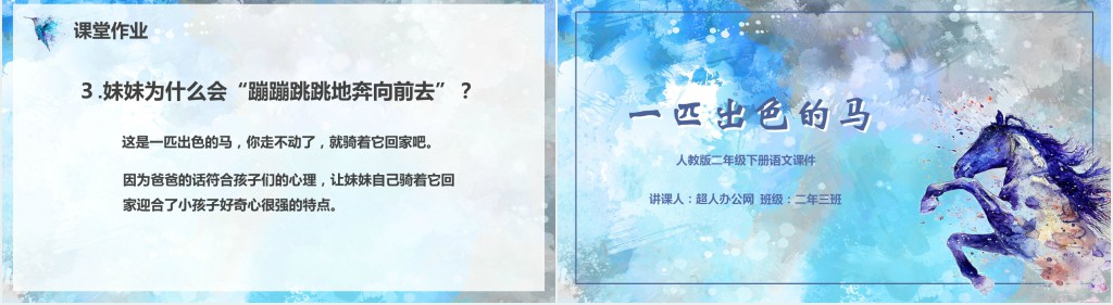 这套小学二年级下册《一匹出色的马》课文PPT课件属于内容型,已包含实质内容,可直接使用!