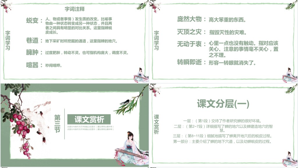 这套小学四年级上册语文蝉教学教案PPT课件属于内容型,已包含实质内容,可直接使用!