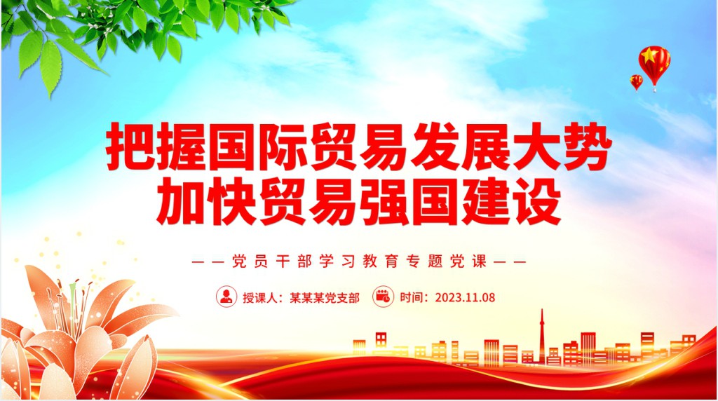 把握国际贸易发展大势加快贸易强国建设PPT党课