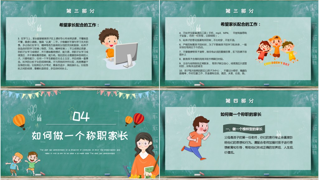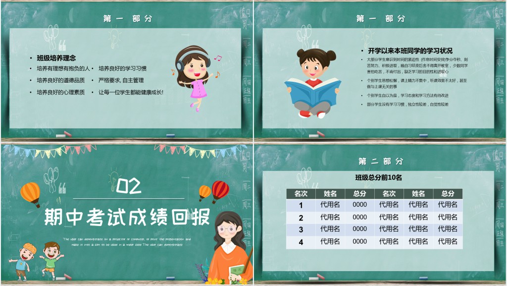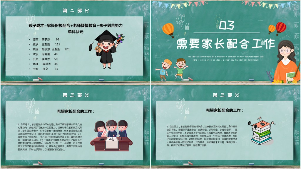 这套黑板风初中家长会主题PPT模版属于内容型,已包含实质内容,可直接使用!