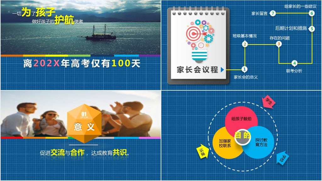 这套高三最后100天家长会PPT模板属于内容型,已包含实质内容,可直接使用!